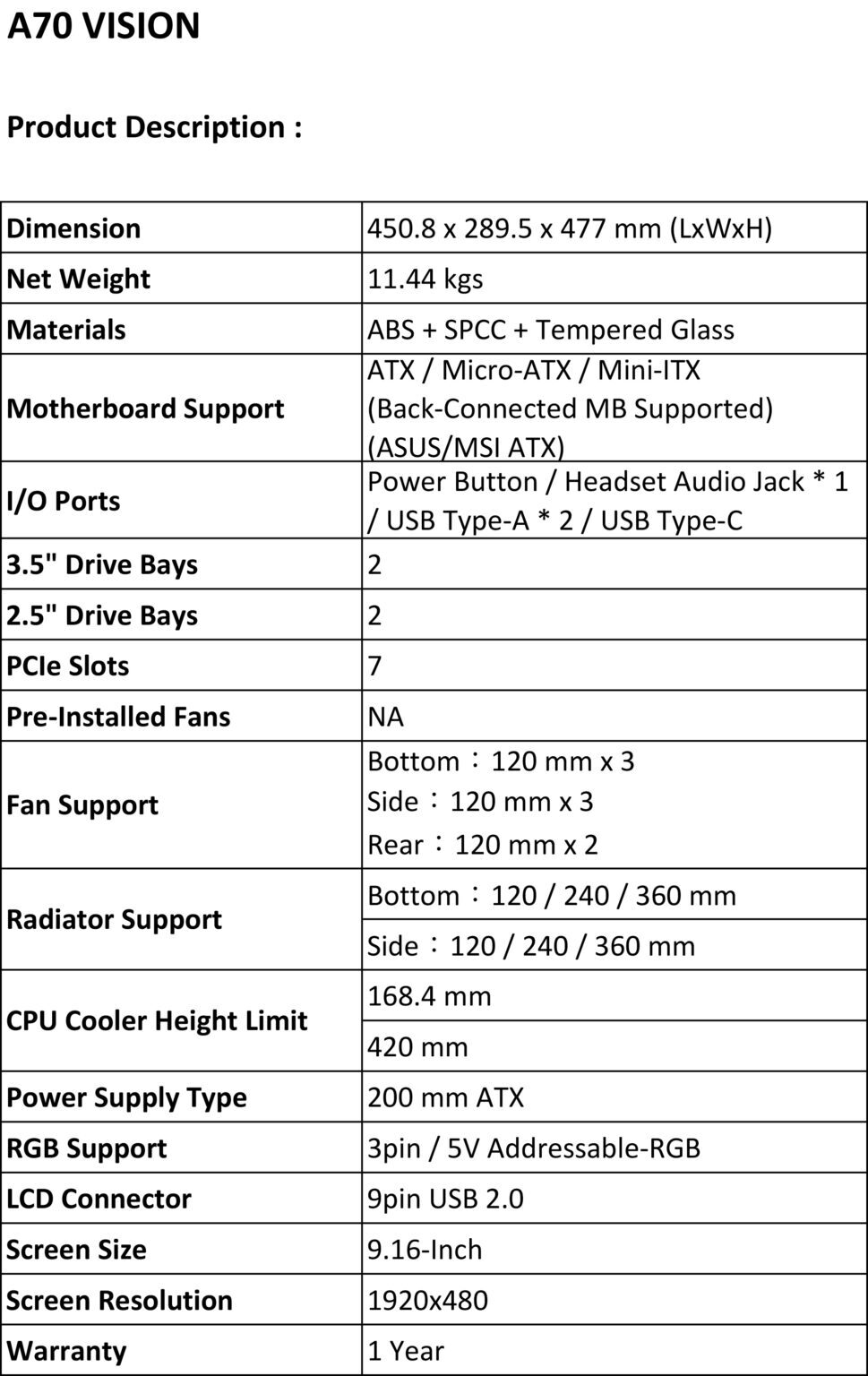 LCD Connector : 9pin USB 2.0
