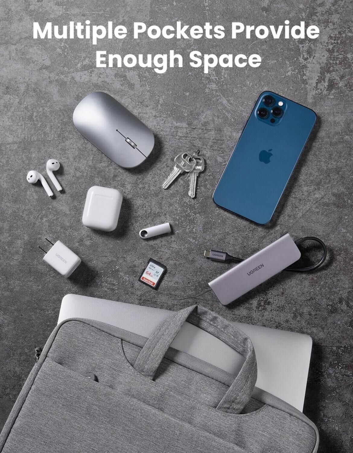 A stylish and portable laptop digital storage bag. This laptop bag supports 13-13.9 inch laptops and can store accessories such as external hard drives, power banks, and Nintendo Switch consoles. It is made of water-resistant Oxford cloth that repels moisture, and the interior uses dense crystal velvet for shock and scratch protection. The overall design is fashionable and minimalist, ideal for a quality lifestyle and sleek travel.