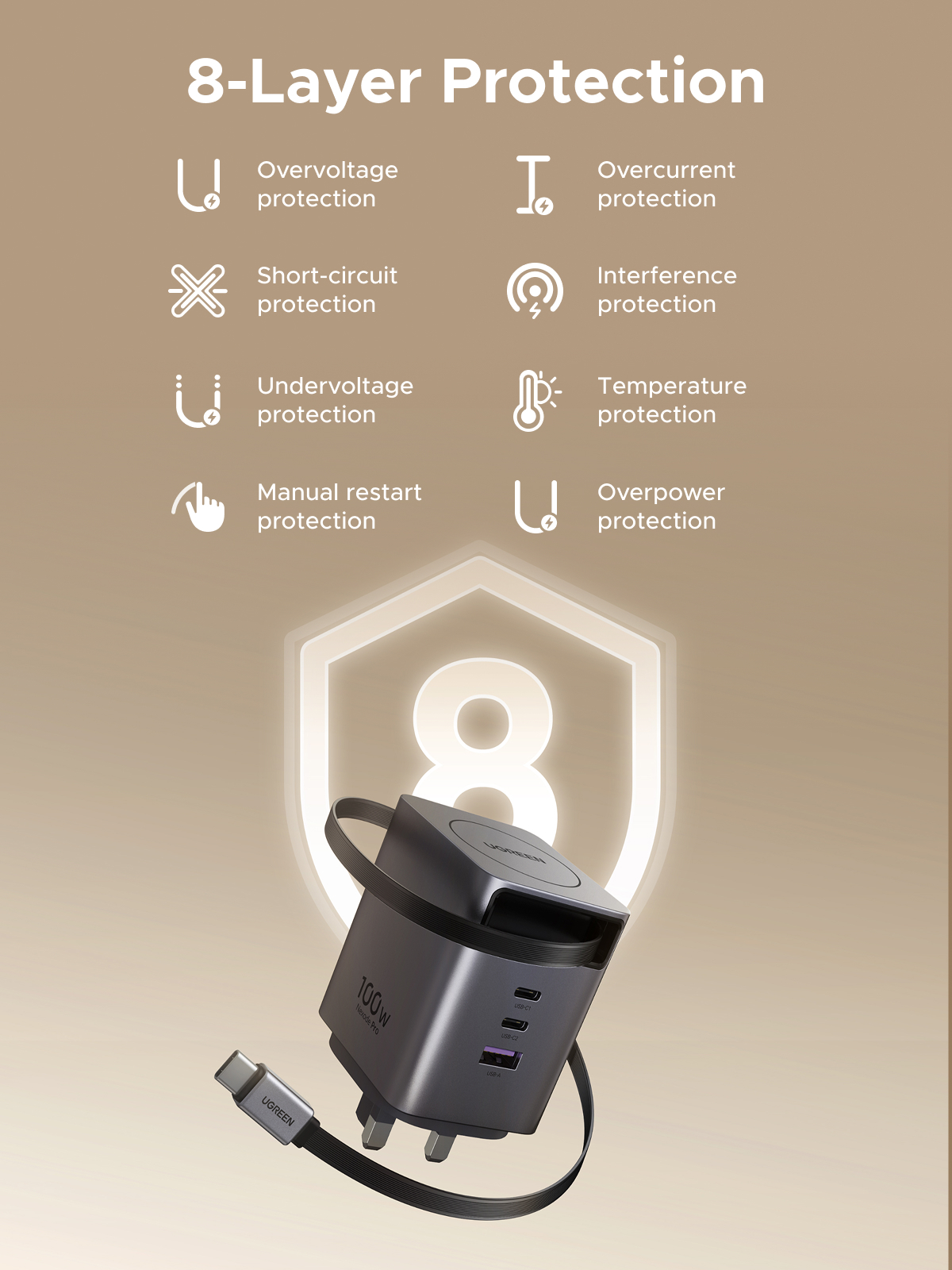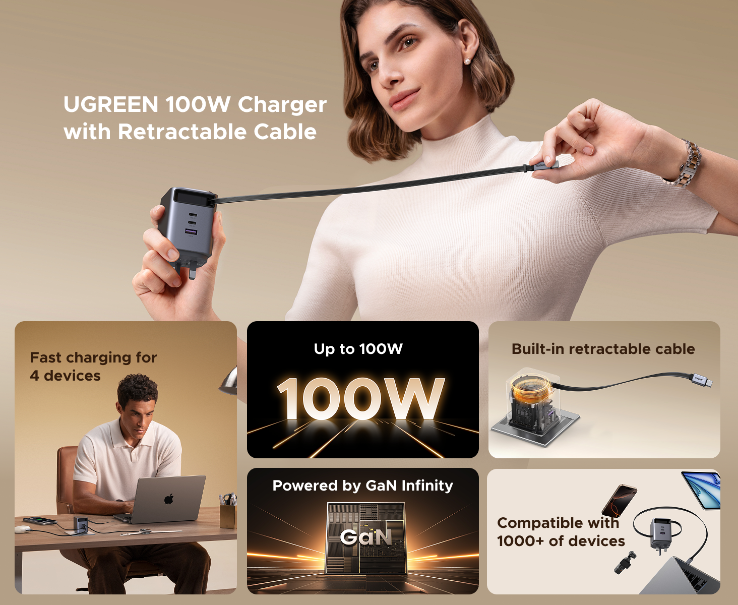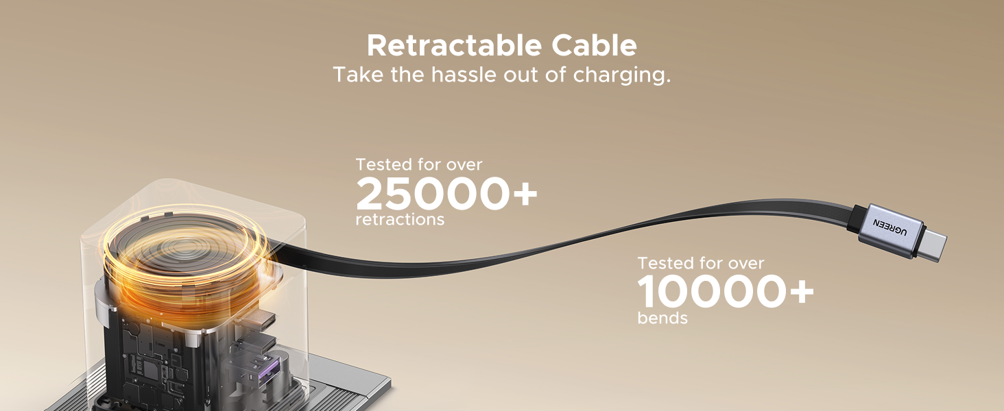 Ports: 2× USB-C, 1× USB-A, Built-in Type-C Cable (0.7m)