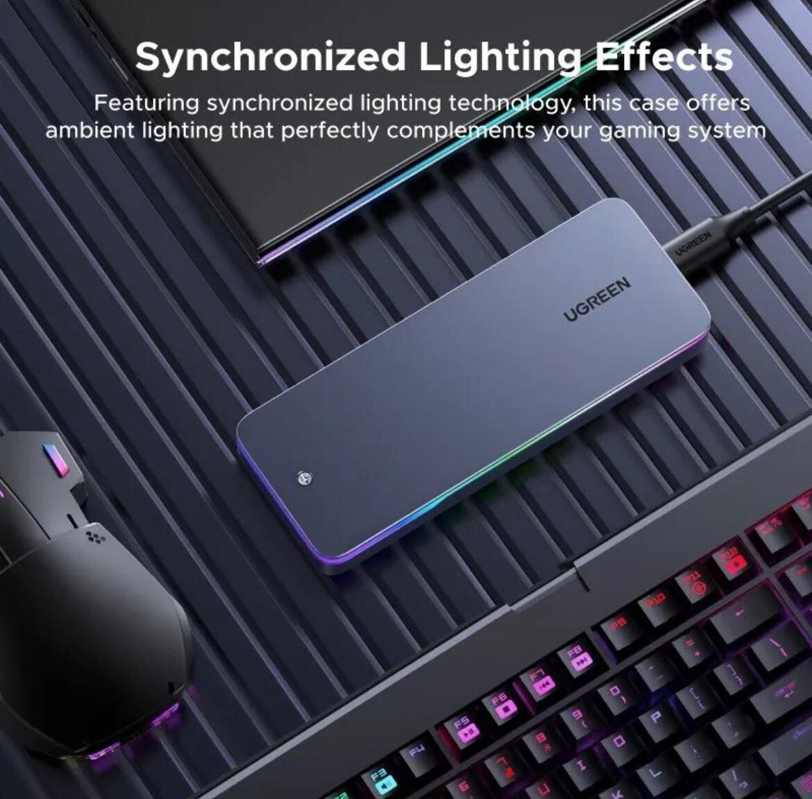 Stylish RGB Lighting: Beyond functionality, this enclosure also features eye-catching RGB lighting that adds style to your tech setup. This means you can customize the appearance of your workspace or gaming station while ensuring excellent performance. Its design is not only about looks but also includes robust protection to safeguard your SSD, giving you the perfect combination of style and security.
