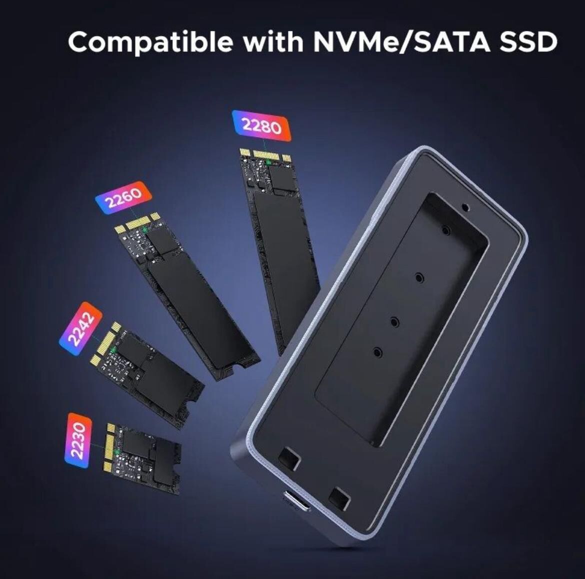 20Gbps Ultra-Fast Transfer: This NVMe SATA enclosure can connect both NVMe and SATA drives. It supports transfer speeds of up to 20Gbps, but you need to ensure your computer port meets the USB-C 3.2 Gen 2x2 standard. (Mac only supports up to 10Gbps transfer speed)