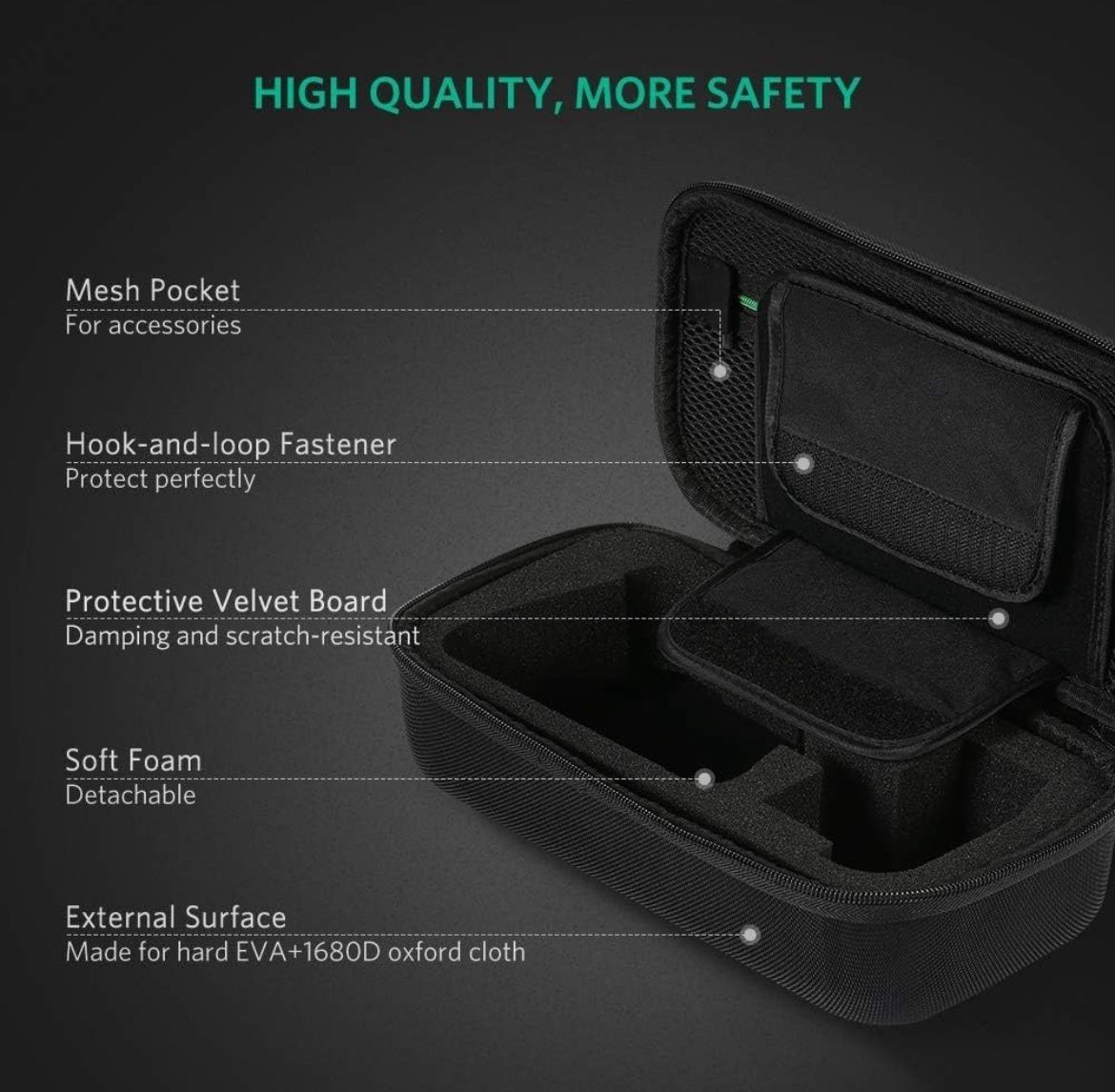 • Durable and robust casing made of rigid EVA and Oxford materials