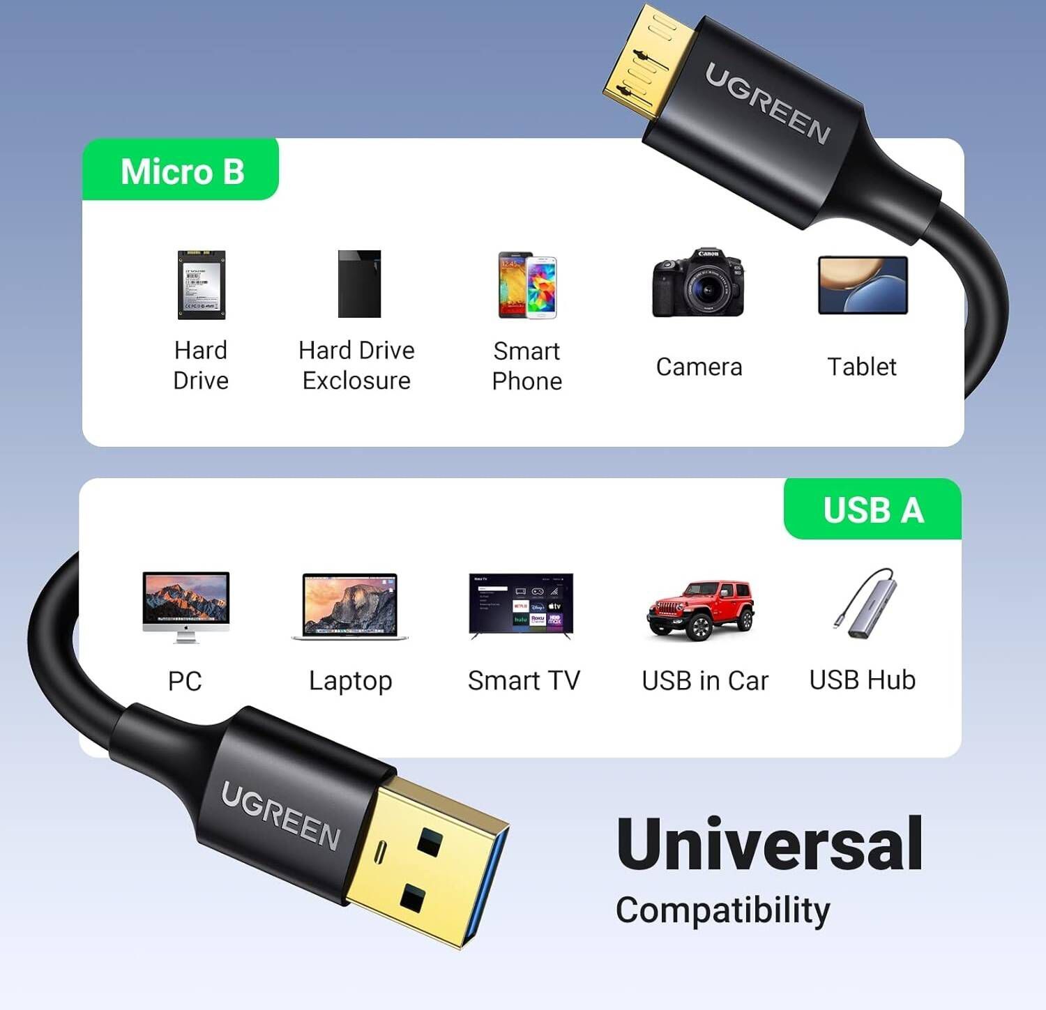·A: USB 3.0, B: Micro USB 3.0