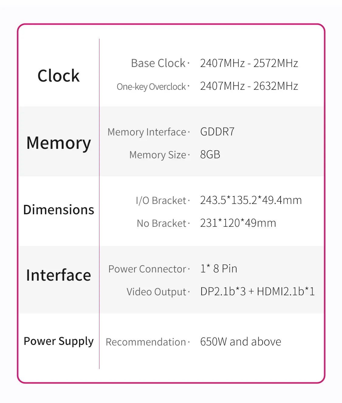 推薦電源:650W以上