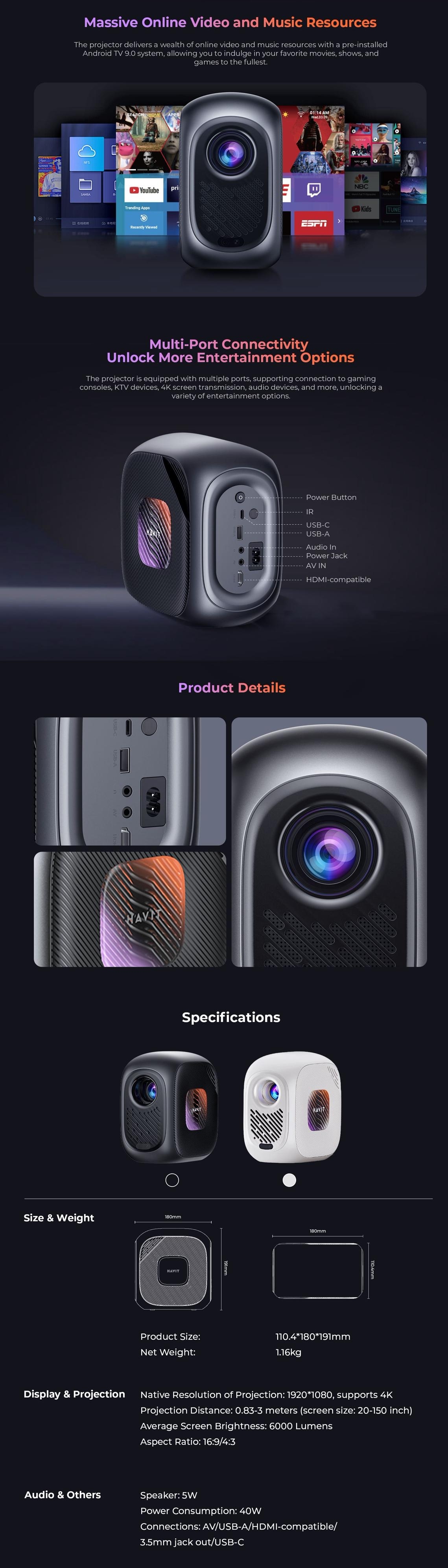投影機原始解析度:1280*720,支援4K