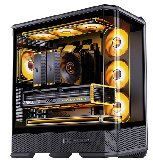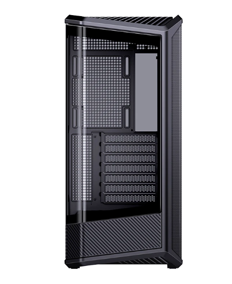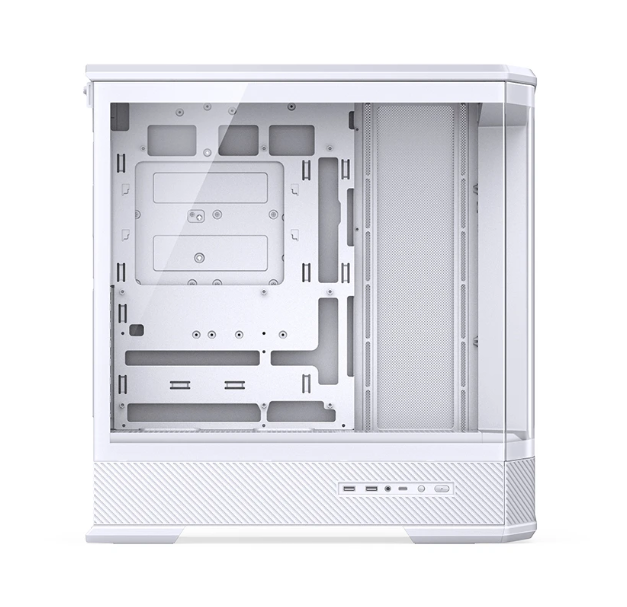 D400採用黃金比例切割立體造型設計,採用曲面彎折成型玻璃,前面板無立柱設計。提供雙360安裝位和多風扇位。