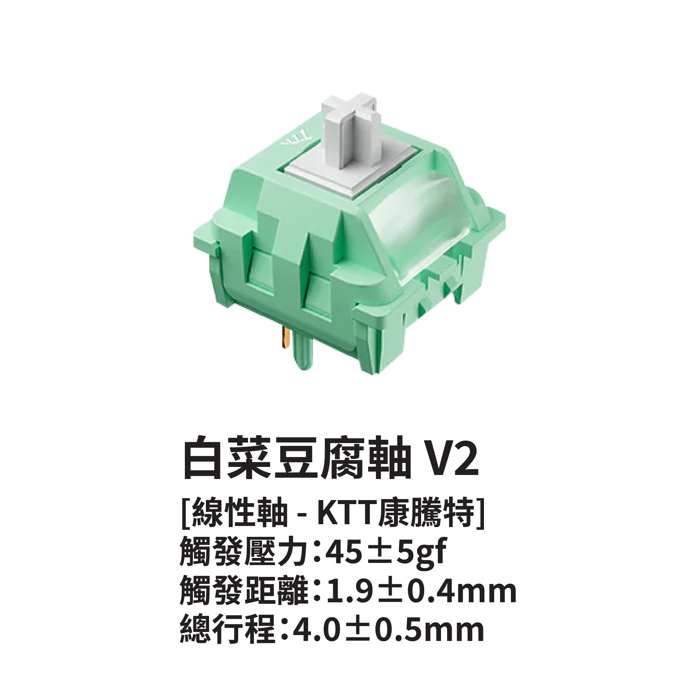 - 鍵帽: 雙色PBT(暮光白), 晶石黑/冰島藍(PBT側刻)