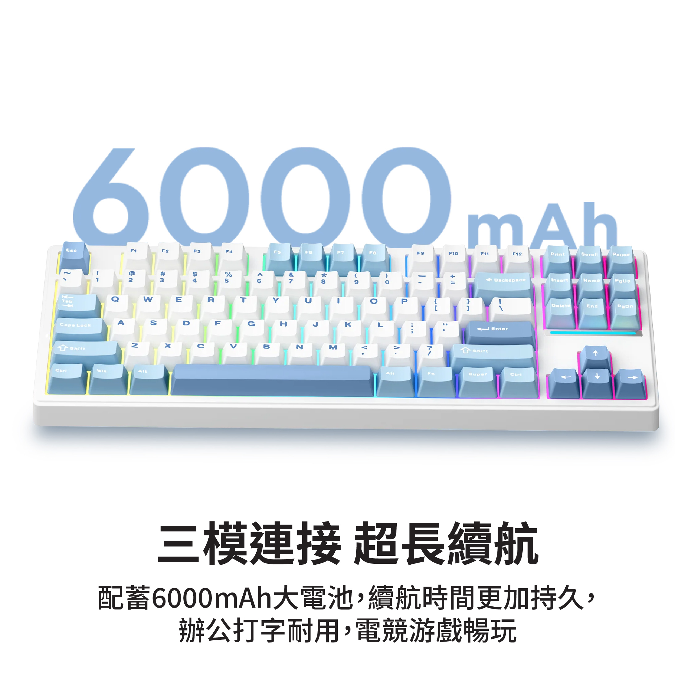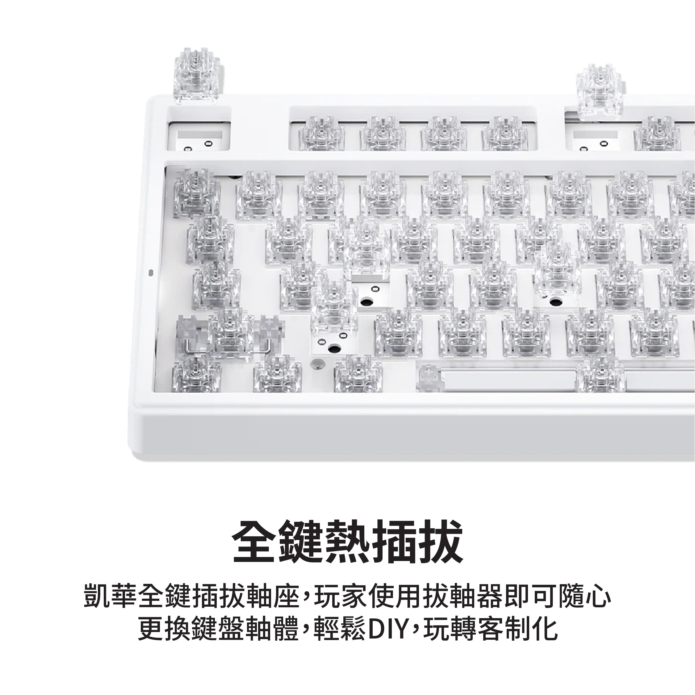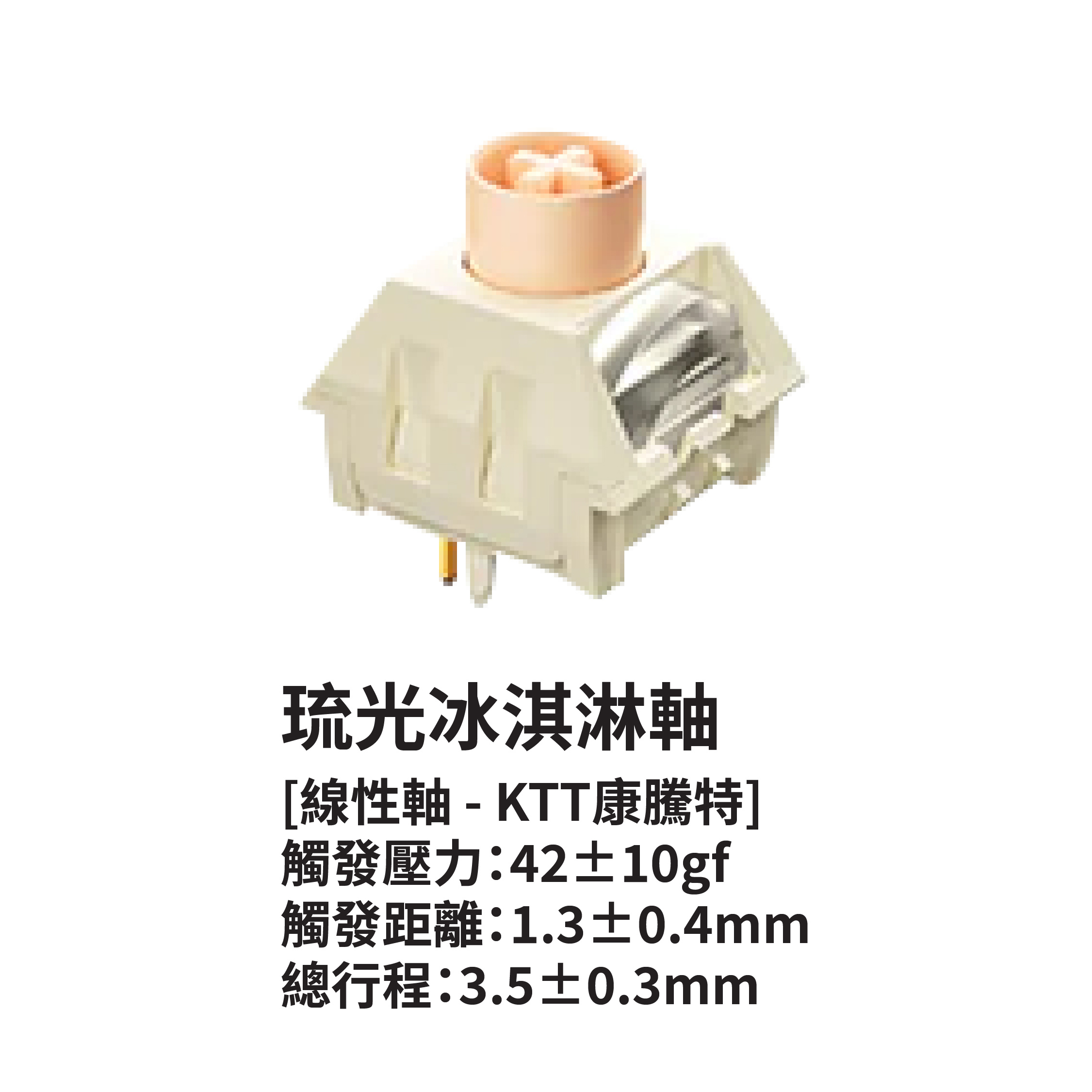 - 鍵帽: 雙色注塑PBT,字符透光&側身半透明(白色鍵盤-冰軸)