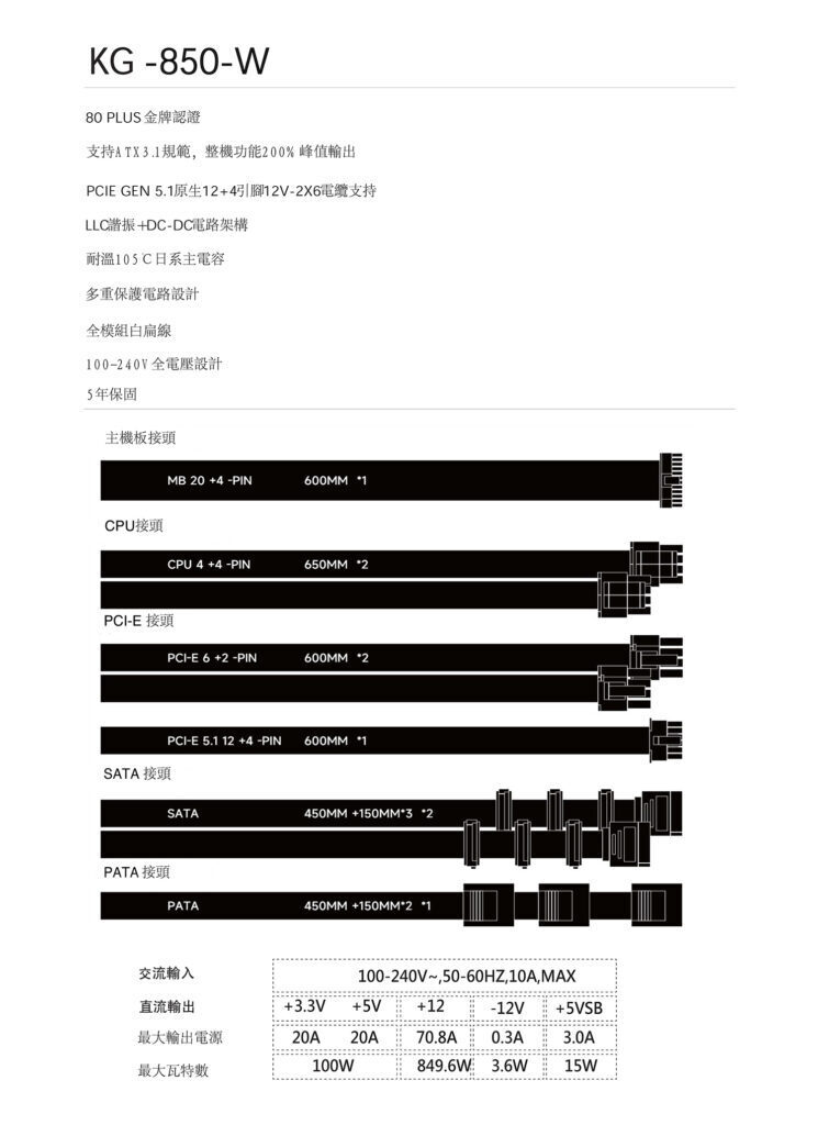 輸入電壓:100-240Vac