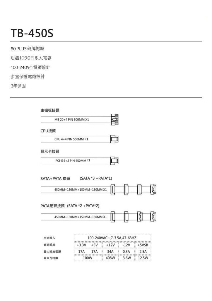 電源供應器規格:
