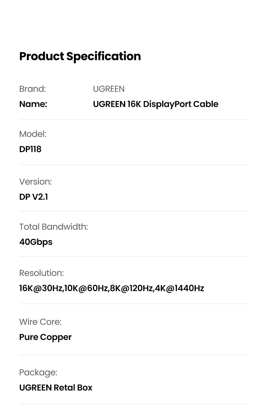 - 解析度: 16K 30Hz / 10K 60Hz / 4K*4K 120Hz / 4K 240Hz