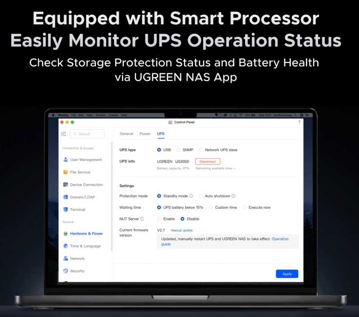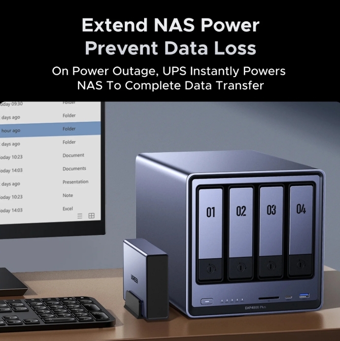 斷電保護:支持與綠聯 NAS 聯動,斷電時自動發信號讓 NAS 安全關機,保護硬碟數據。