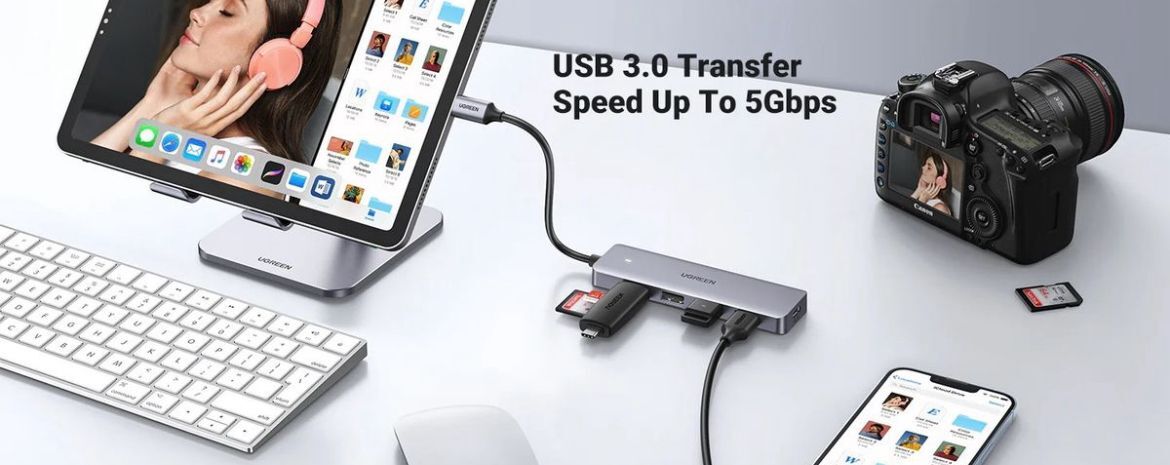 5Gbps高速傳輸:該 USB C 數據集線器支持高達5Gbps的超快數據傳輸速度,比 USB 2.0(480 Mbps)快10倍,讓您能在幾秒鐘內傳輸高清電影或大文件。